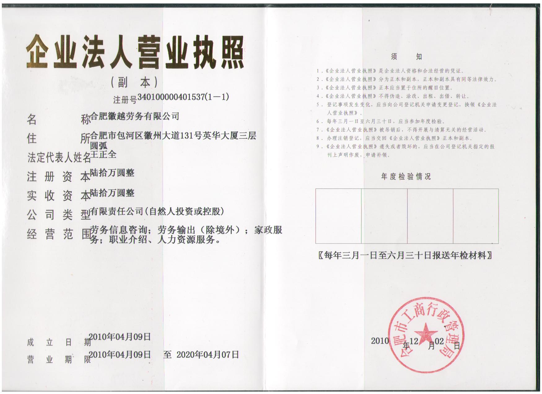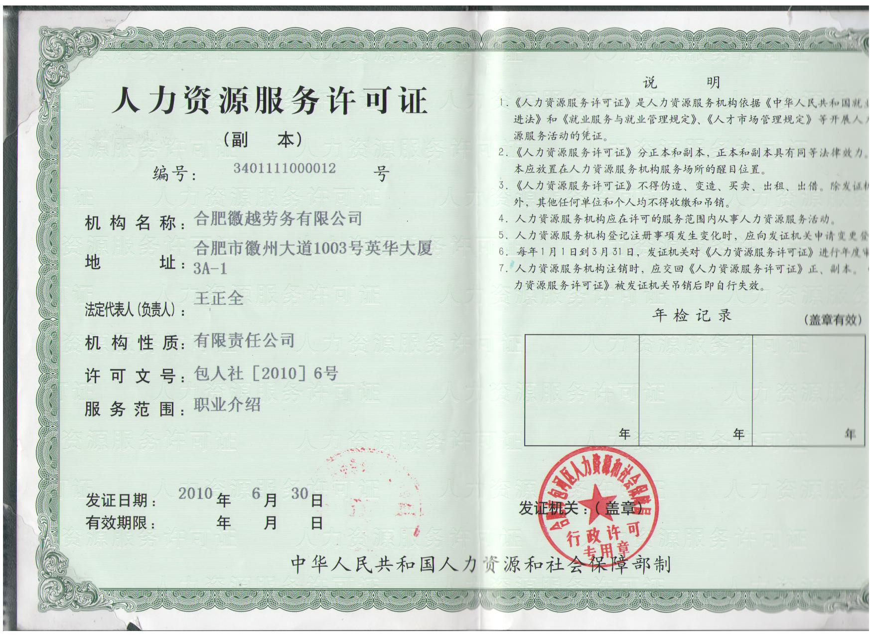 徽越公司自2008年中建總公司及多家世界500強(qiáng)企業(yè)授權(quán)招工資格以來,在同行業(yè)知名度信譽(yù) 度較高。徽越公司是安徽省一家經(jīng)過合肥市工商行政管理局(安徽省工商行政管理局備案審核)、合肥市勞動(dòng)和社會(huì)保障局及合肥市建設(shè)委員會(huì)(安徽省建設(shè)廳資質(zhì)審批)審核批準(zhǔn)成立的正規(guī)合法的且具有豐富建筑勞務(wù)輸出和項(xiàng)目施工管理經(jīng)驗(yàn)的信譽(yù)良好的勞務(wù)派遣和勞務(wù)分包...>>查看詳情