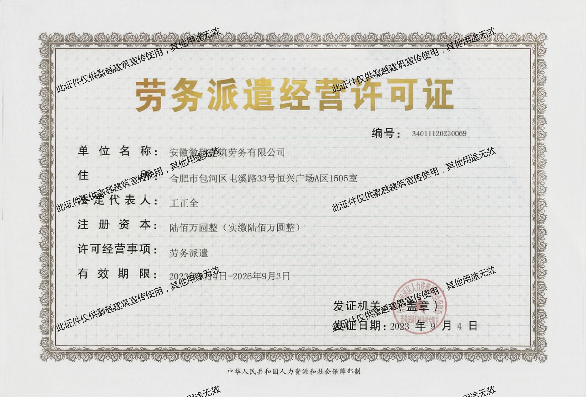 ·公司名稱:安徽徽越建筑勞務(wù)有限公司